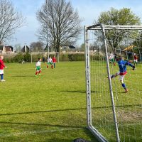 Het was heerlijk voetbalweer en de jongens gingen goed van start. Na de 0-1 van Merih werd het na een foutje achterin ook snel 1-1, maar daarna ging het hard. Via Merih (2x), Freslam en Quinn namen de Vogels een 1-5 voorsprong.