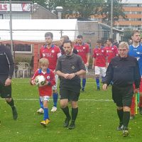 Daarna kwam het grote moment voor Guus om samen met de beide elftallen en de scheidsrechter en zijn assistenten het veld te betreden