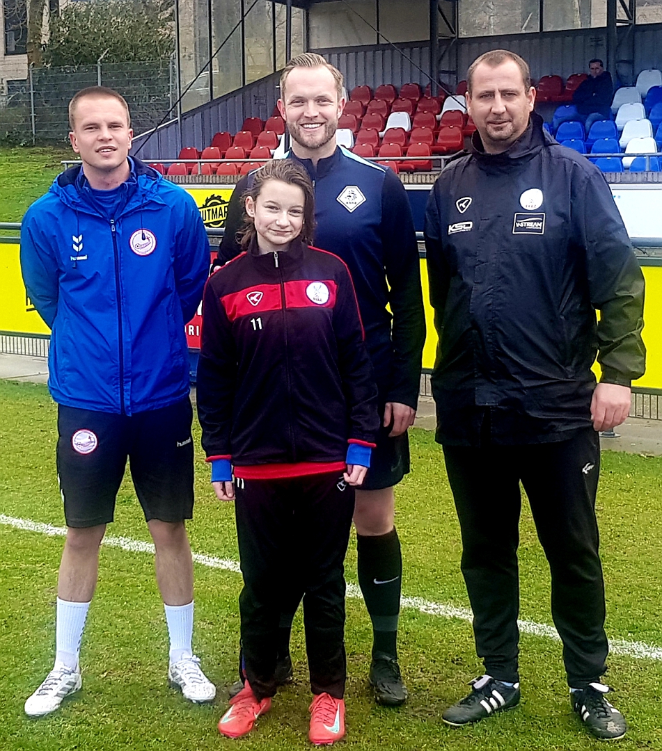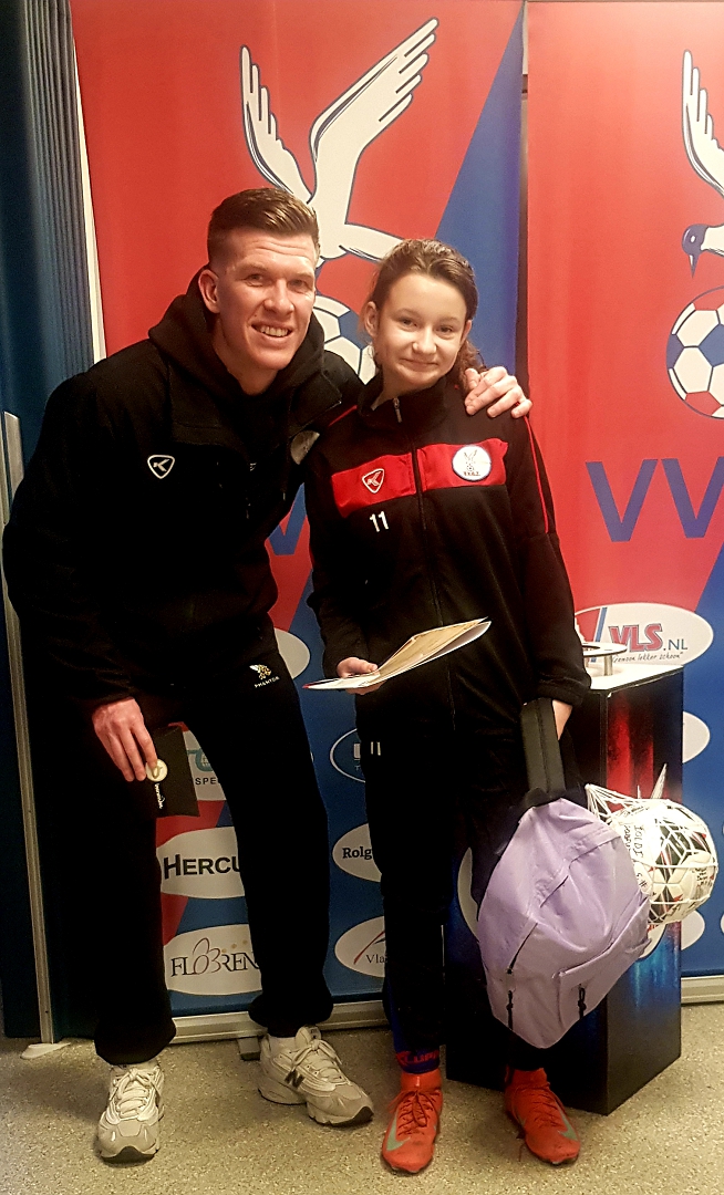 behaald te hebben tegen SV Noordeloos MO11-1, kwam een nerveuze en verlegen Lola samen met haar moeder Esther en zus Xsiara 's middags naar een winderig en druilerig